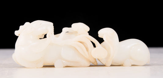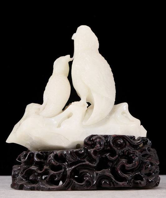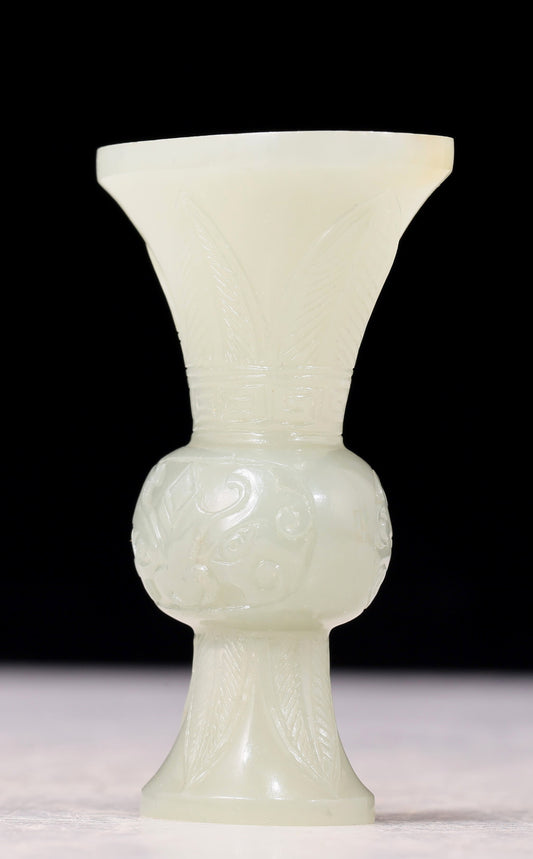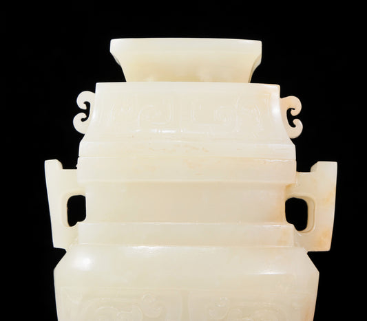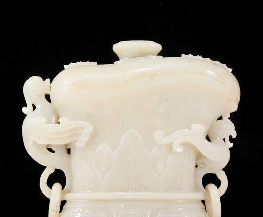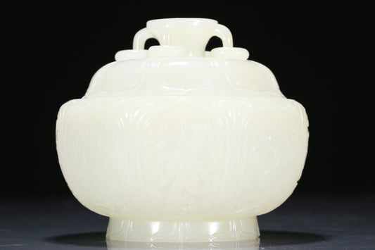 An exquisite white jade animal-faced dragon and phoenix ear bottle with lid