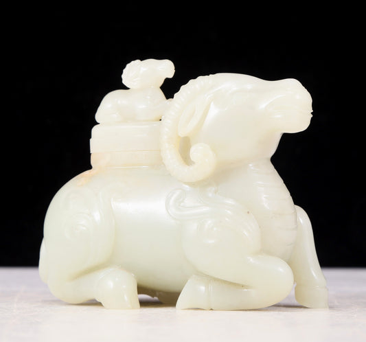 An exquisite white jade vases with double ears with lotus pattern and lid