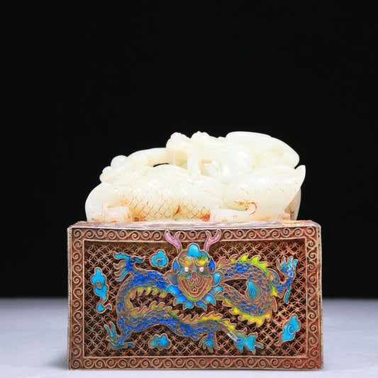 An Exquisite White Jade Gold-Mounted Blueing 'Dragon' Seal