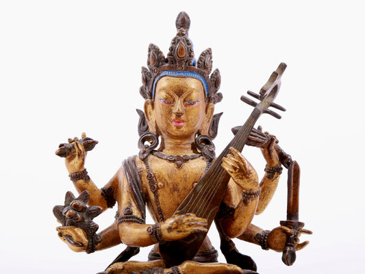 A gilt bronze statue of Saraswati