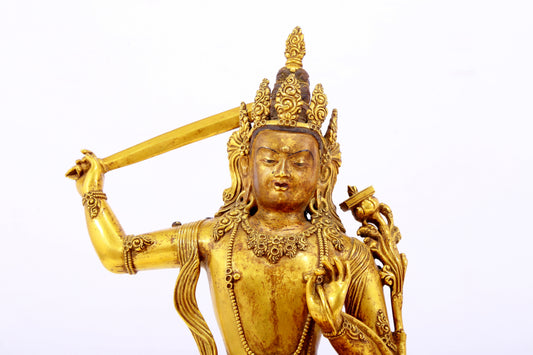 A gilt bronze statue of Manjushri Bodhisattva