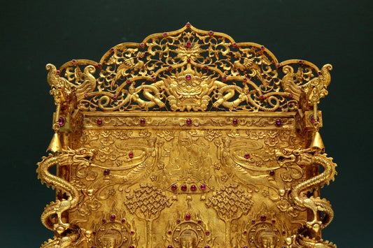 Magnificent Gilt-Bronze Figures Of Buddha With Sutra Scriptures On The Back And A Gilt-Bronze 'Dragon& Phoenix' Stand