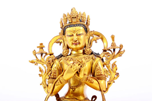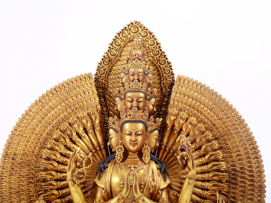 majestic gilt bronze statue of Avalokitesvara with Thousand Arms