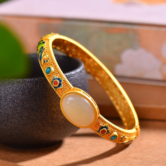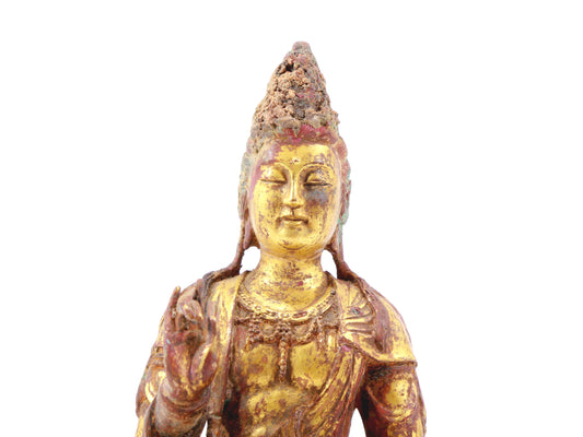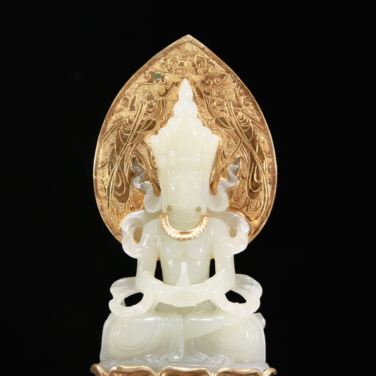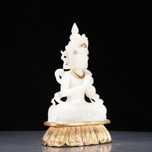 Precious White Jade Gold-Mounted Figure Of Bodhisattva