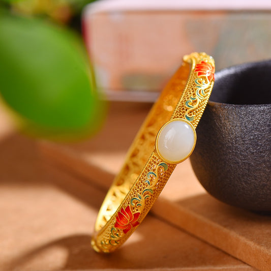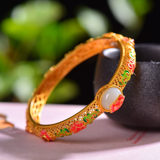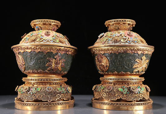 Precious Pair Of Jasper Gold-Mounted 'Scrolling Lotus' Bowls And Covers With Gilt-Silver Blueing 'Flower' Stands