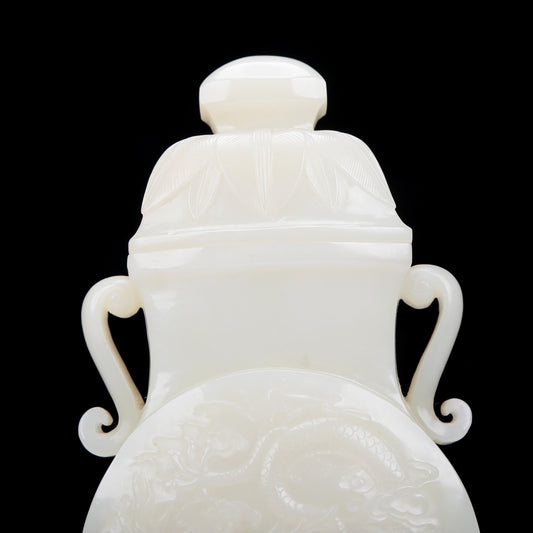 Precious White Jade 'Dragon& Auspicious Cloud' Vase And Cover