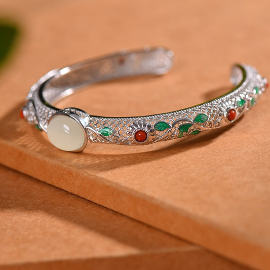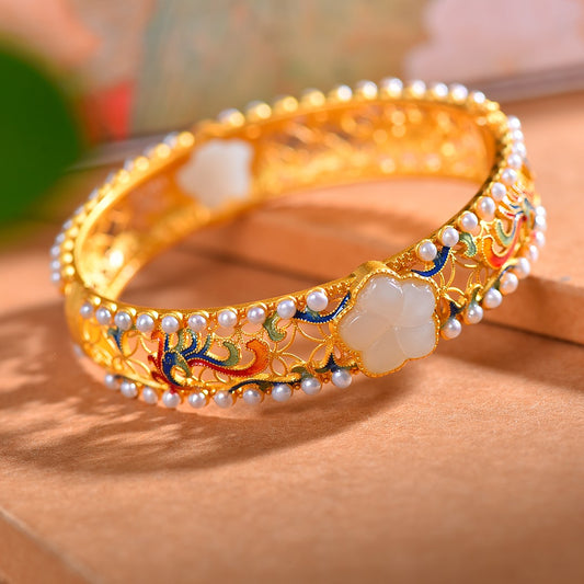 Silver gilt inlaid Hetian jade enamel flower-shaped bracelet
