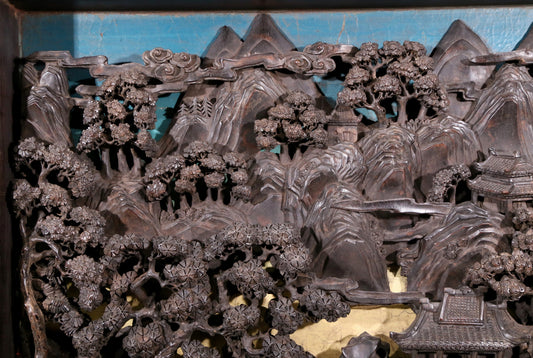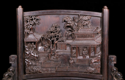 An exquisite zitanwood table screen with landscape and figure patterns