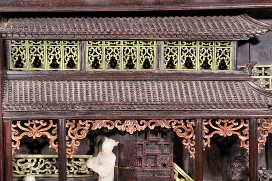 An exquisite huanghuali wood lacquered, gold-embedded, landscape and figure table screen