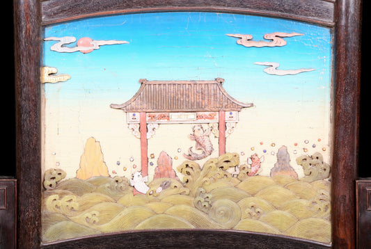 An exquisite zitanwood table screen with fish patterns