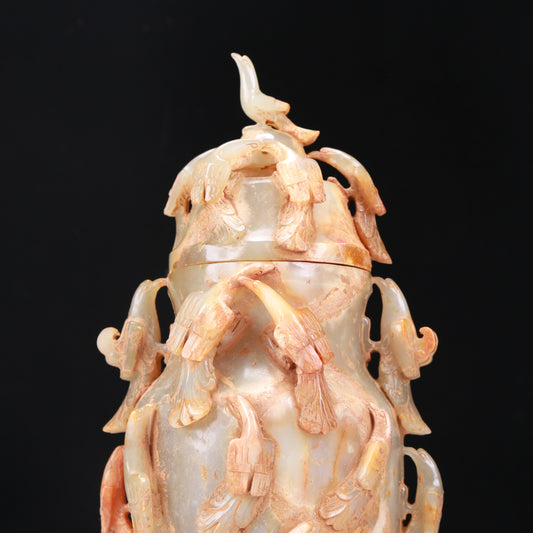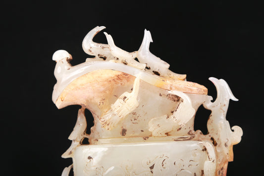 An Elaborate White Jade 'Bird' Vase And Cover