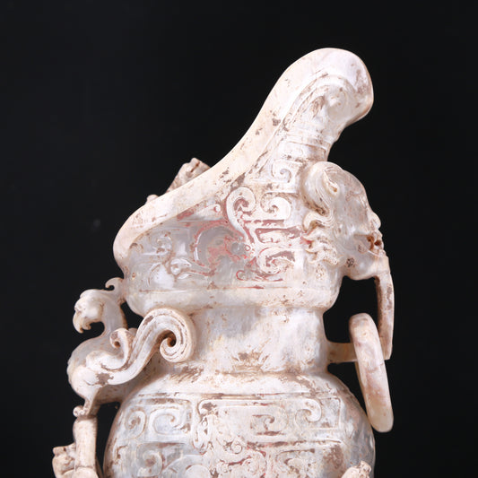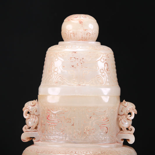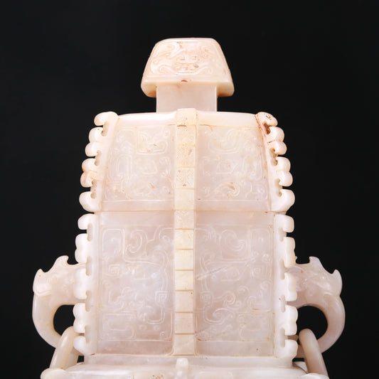 An Elaborate White Jade 'Animal Mask' Vase And Cover