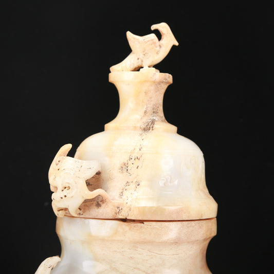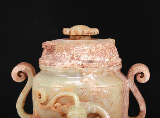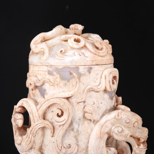 An Archaic White Jade 'Auspicious Cloud& Dragon' Vase And Cover