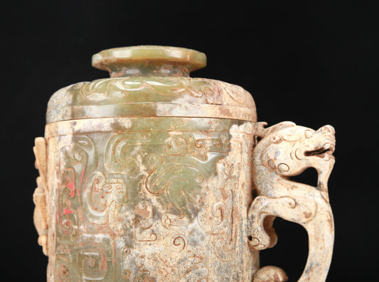 An Archaic Yellow Jade 'Auspicious Beast' Jar