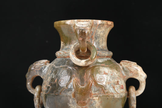 An Archaic Yellow Jade 'Auspicious Beast' Vase