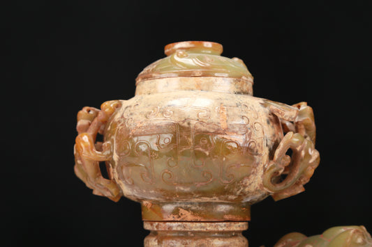 An Archaic Yellow Jade 'Dragon' Tripod Jar And Cover