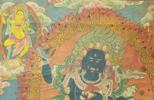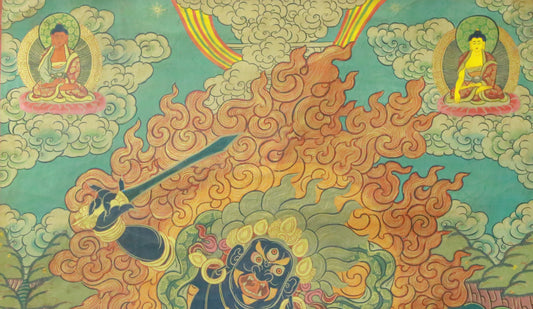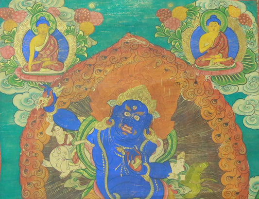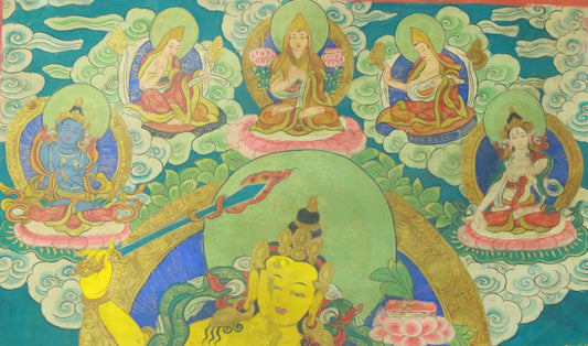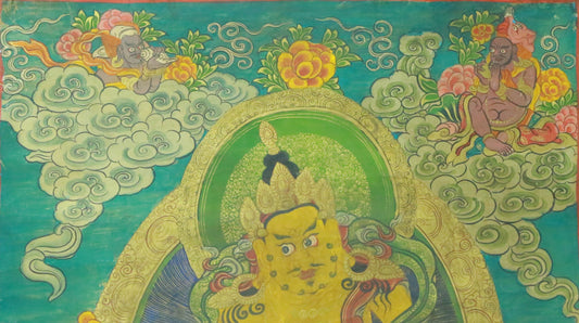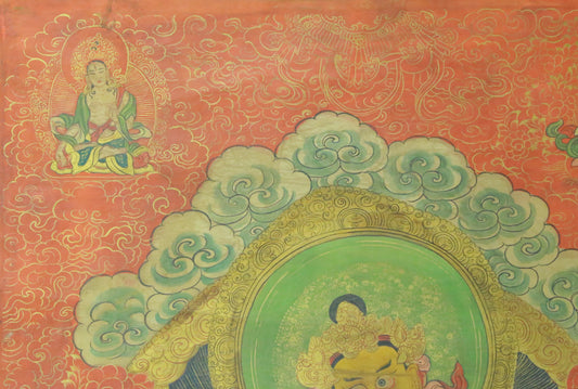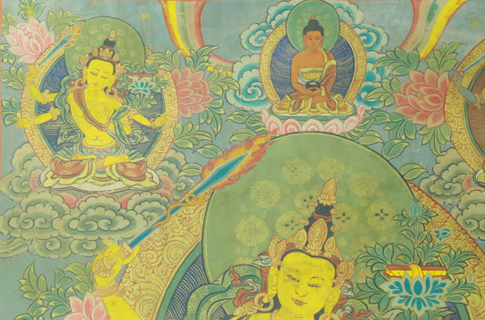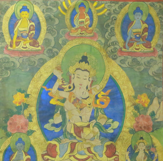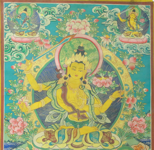 An Exquiste Painted Gold Manjushri Bodhisattva with Four Arms Thangka