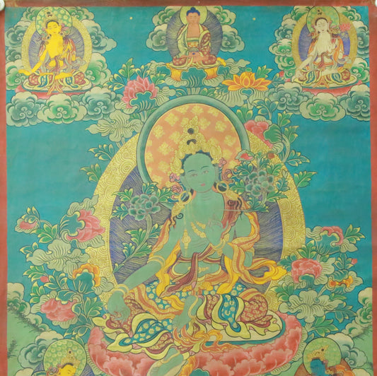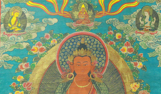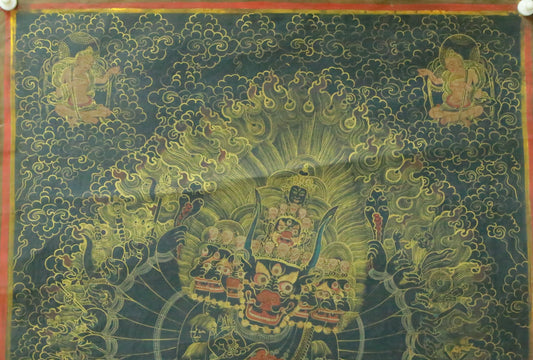 An Exquiste Painted Gold Four-Armed Avalokiteshvara Thangka