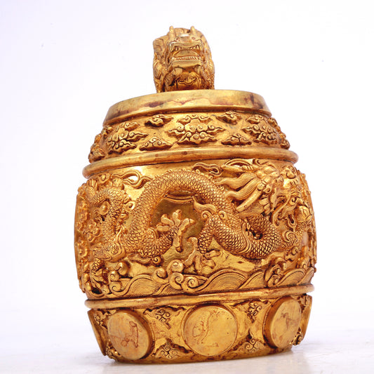 A Wonderful Gilt-Bronze 'Dragon& Auspicious Cloud' Box