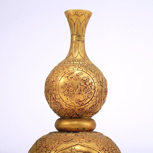 A Wonderful Gilt-Bronze 'Scrolling Lotus& Dragon' Gourd-Form Vase