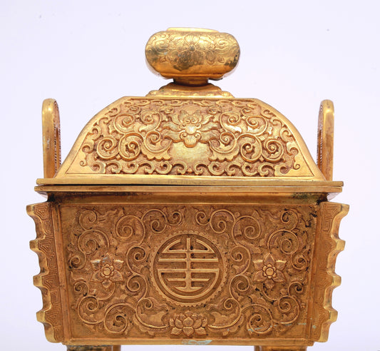 A Wonderful Gilt-Bronze 'Scrolling Lotus& Phoenix' Tripod Box