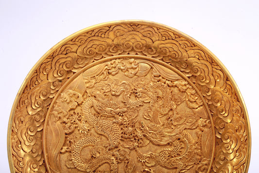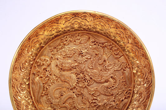 A Wonderful Gilt-Bronze 'Dragon& Auspicious Cloud' Dish