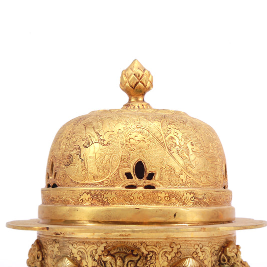 A Wonderful Gilt-Bronze 'Scrolling Lotus' Censer And Cover
