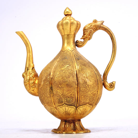 A Wonderful Gilt-Bronze 'Scrolling Lotus& Auspicious Beast' Ewer