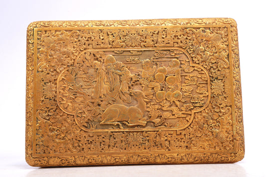 A Wonderful Gilt-Bronze 'Scrolling Lotus, Bat, Figure' Box