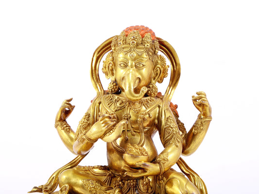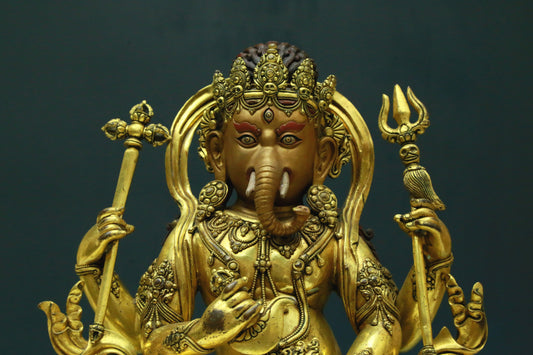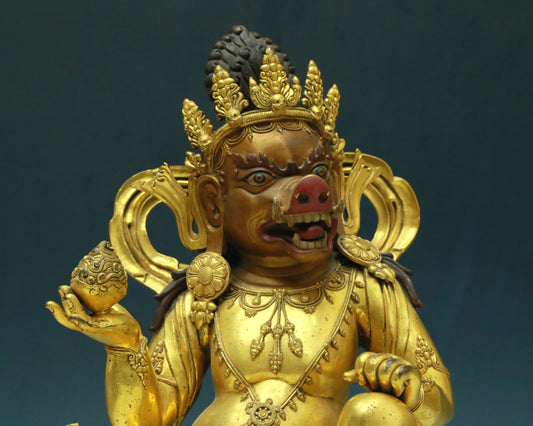 A Wonderful Gilt-Bronze Figure Of Kubera With An Elephant's Trunk