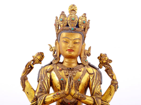 A Wonderful Gilt-Bronze Figure Of Four-Armed Avalokiteshvara