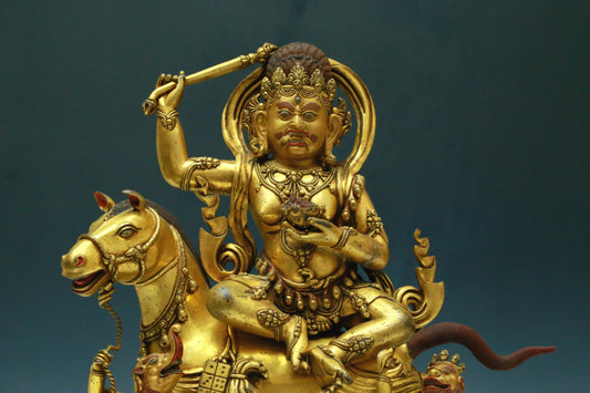A Wonderful Gilt-Bronze Figure Of Kubera Seated On A Horse