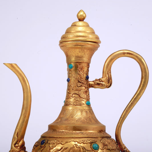 A Wonderful Gilt-Bronze Gem-Inlaid 'Dragon, Phoenix, Auspicious Cloud' Ewer