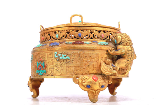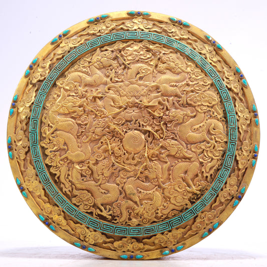 A Wonderful Gilt-Bronze Turquoise-Inlaid 'Dragon& Auspicious Cloud' Box