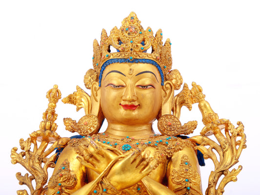 A Wonderful Gilt-Bronze Gem-Inlaid Figure Of Bodhisattva