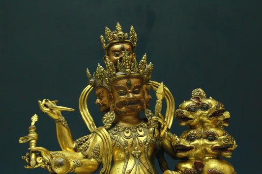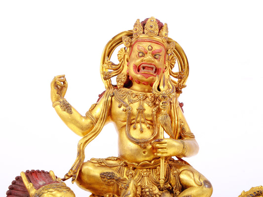 A Wonderful Gilt-Bronze Figure Of Vajrapani Seated On A Beast