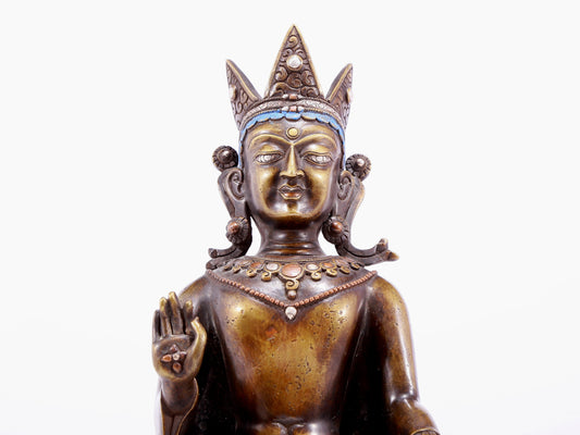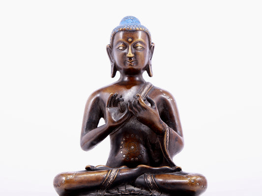 An Archaic Alloy-Copper Silver-Inlaid Figure Of Buddha Shakyamuni