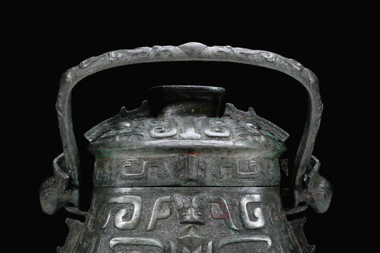 An Archaic Bronze 'Animal Mask' Ewer And Cover With Inscriptions