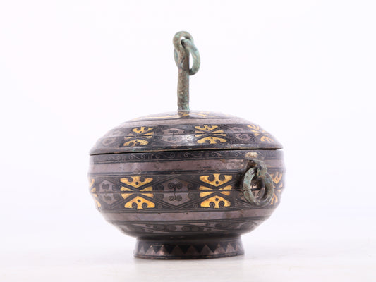 An Archaic Bronze Gold& Silver-Inlaid Oil Lamp-Form Box