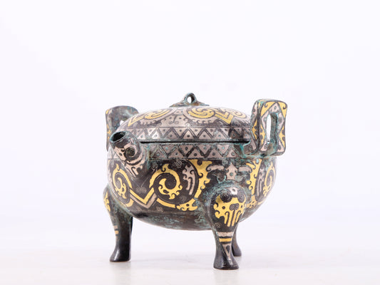 An Archaic Bronze Gold& Silver-Inlaid Censer
