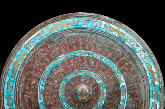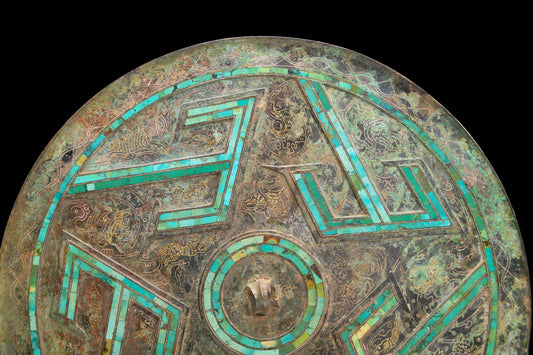 An Archaic Circular Bronze Turquoise& Gold& Silver-Inlaid 'Auspicious Beast' Mirror