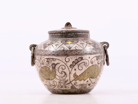 An Archaic Pair Of Bronze Gold& Silver-Inlaid 'Bird& Flower' Jar And Cover