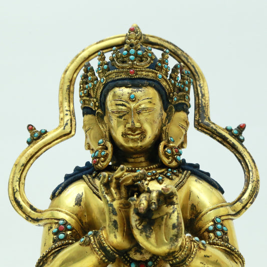 An Archaic Gold-Painted Bronze Figure Of Maitreya