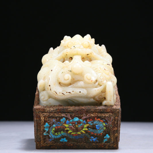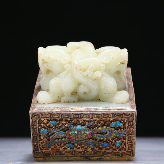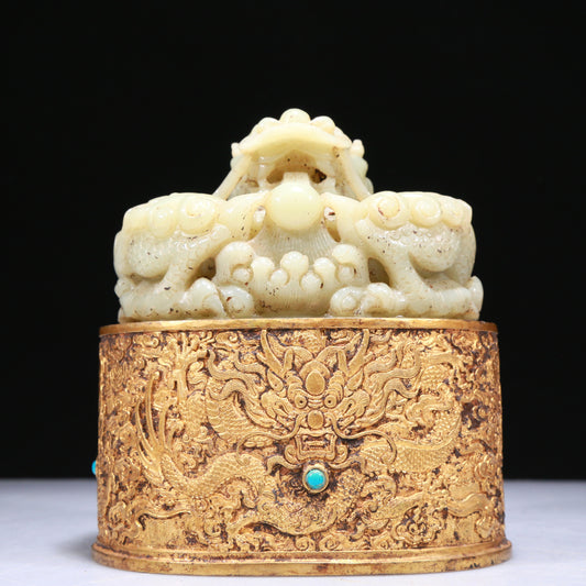 An Elaborate White Jade Gilt-Bronze-Mounted 'Dragon' Seal