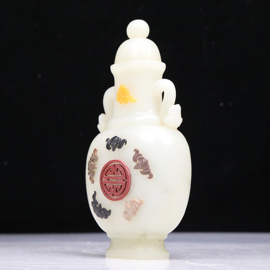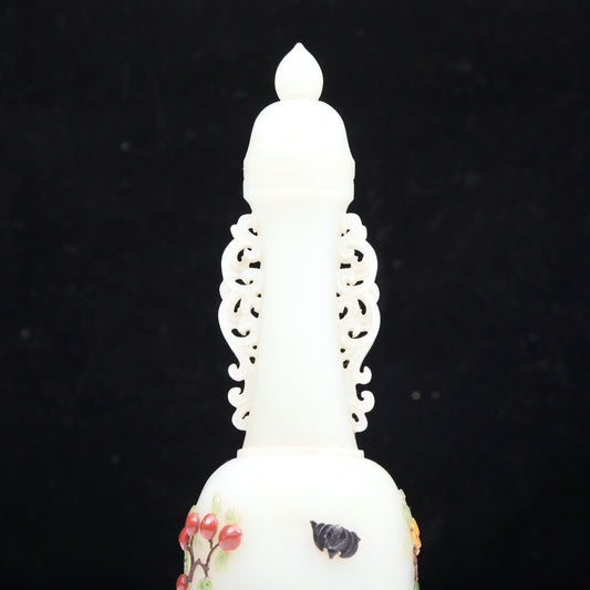 An Excellent White Jade Gem-Inlaid 'Bat' Vase And Cover