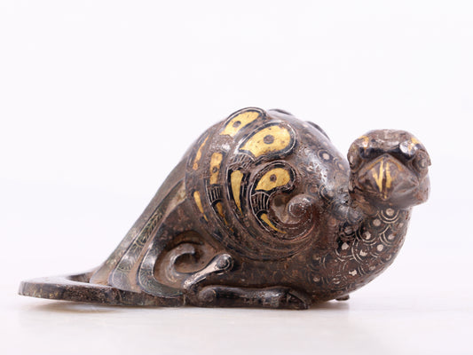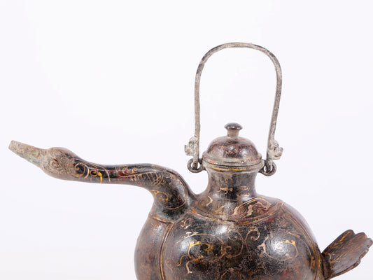 An exquisite bronze inlaid gold and silver duck-shaped ewer
