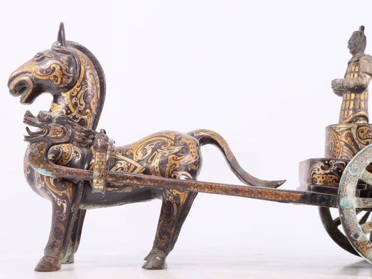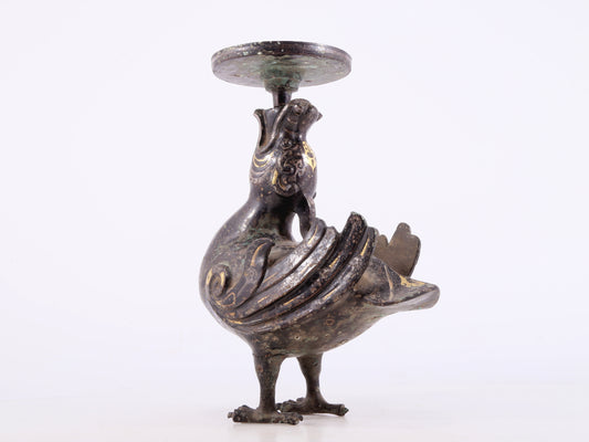 An exquisite bronze inlaid gold and silver candlestick with auspicious animals