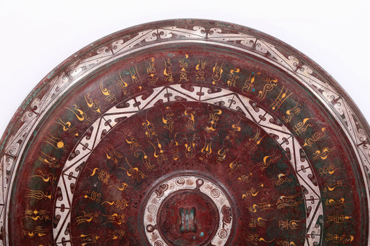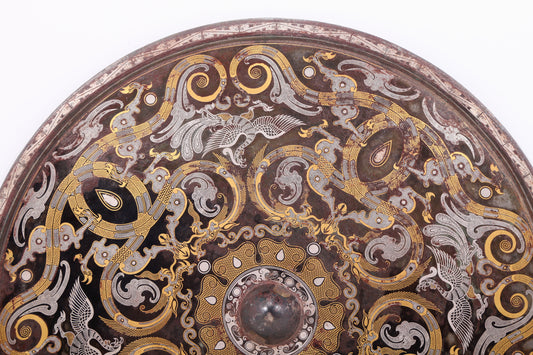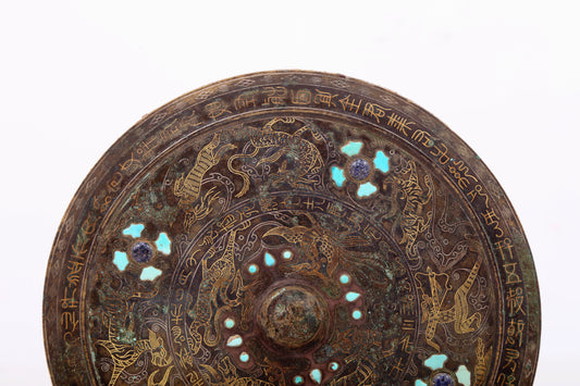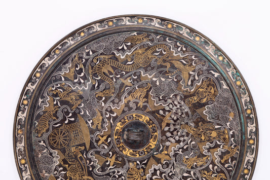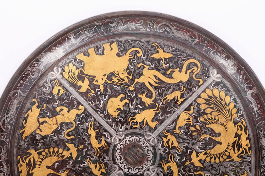 An exquisite bronze inlaid gold and silver round mirror with auspicious animal patterns