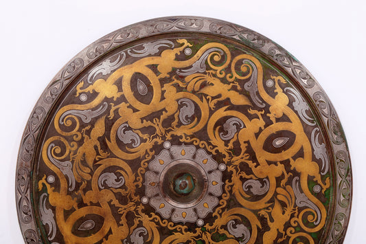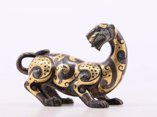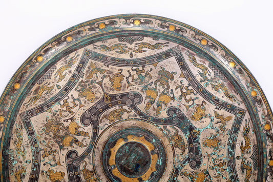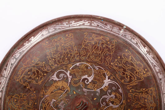 An exquisite bronze inlaid gold and silver mirror with auspicious animal patterns