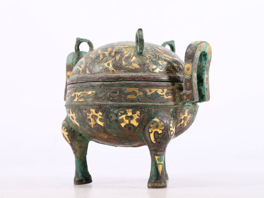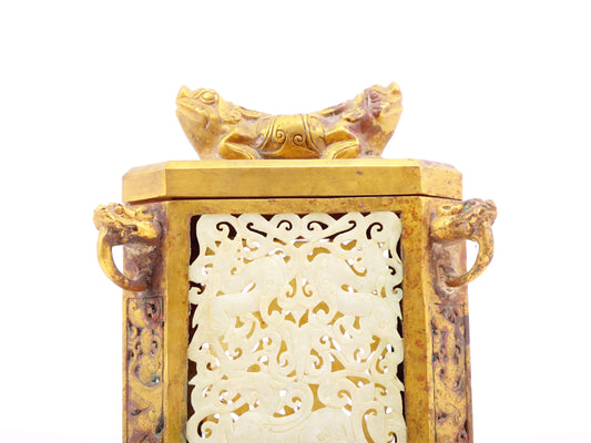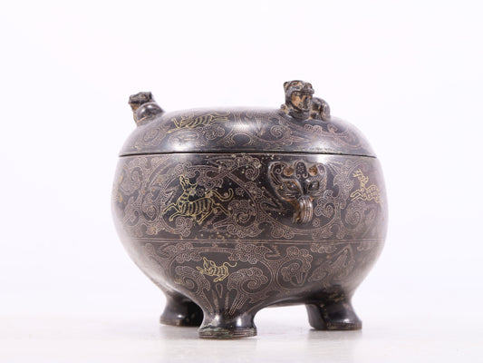 An exquisite bronze-embedded gold and silver auspicious animal-shaped jar